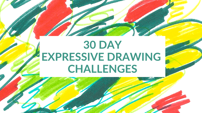 30 day self-directed expressive art challenges offer you a chance to try a modality of expressive drawing in a self-directed way. This is not an e-course. It is simply a challenge to show up in your sketchbook and create an expressive drawing every day for 30 days.
