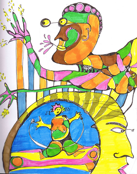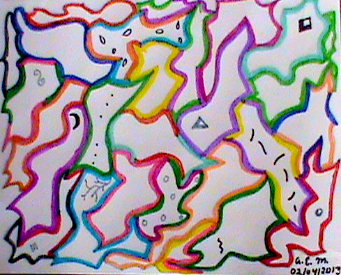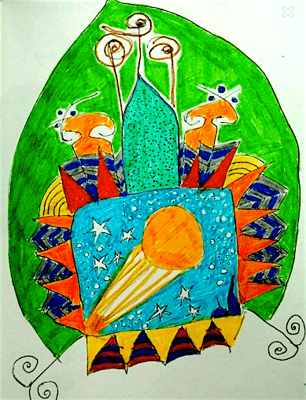 This activity encouraged my intuition to emerge and play its role gradually. I enjoyed doing these and I enjoyed using felt pens. The drawings acted like a mirror of my subconscious. I ended up grateful for whatever I put the on paper and I honoured each drawing by coloring it.