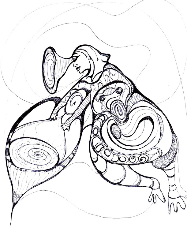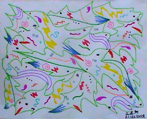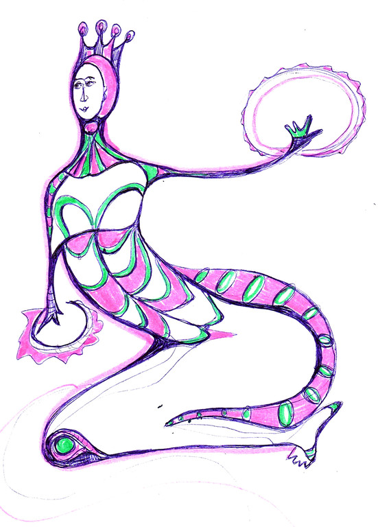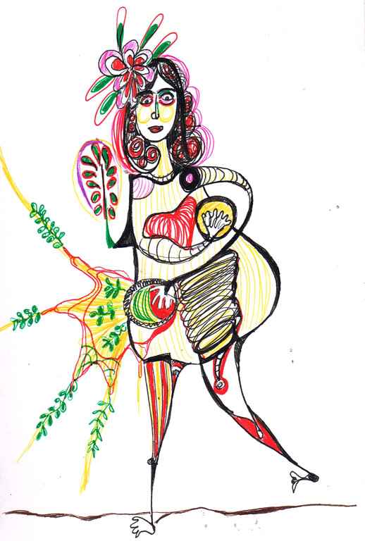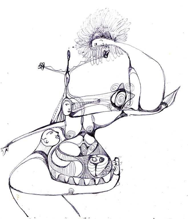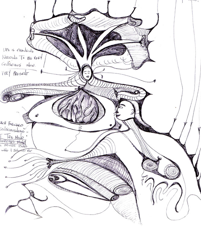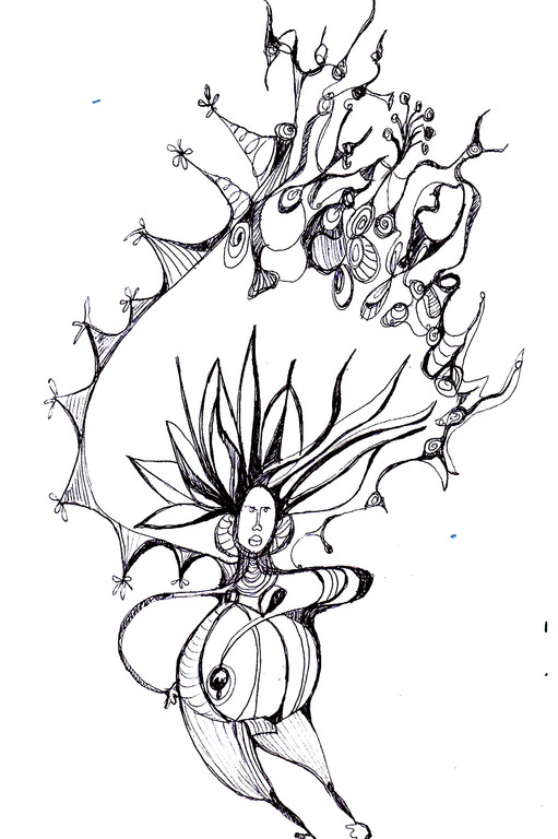 Intuitive drawings can begin as simple doodle that will become more eloquent as you practice. You can use ballpoint pens, markers, gel pens or pastels. Draw for the surprise and joy of the process, without knowing in advance how each drawing will turn out.