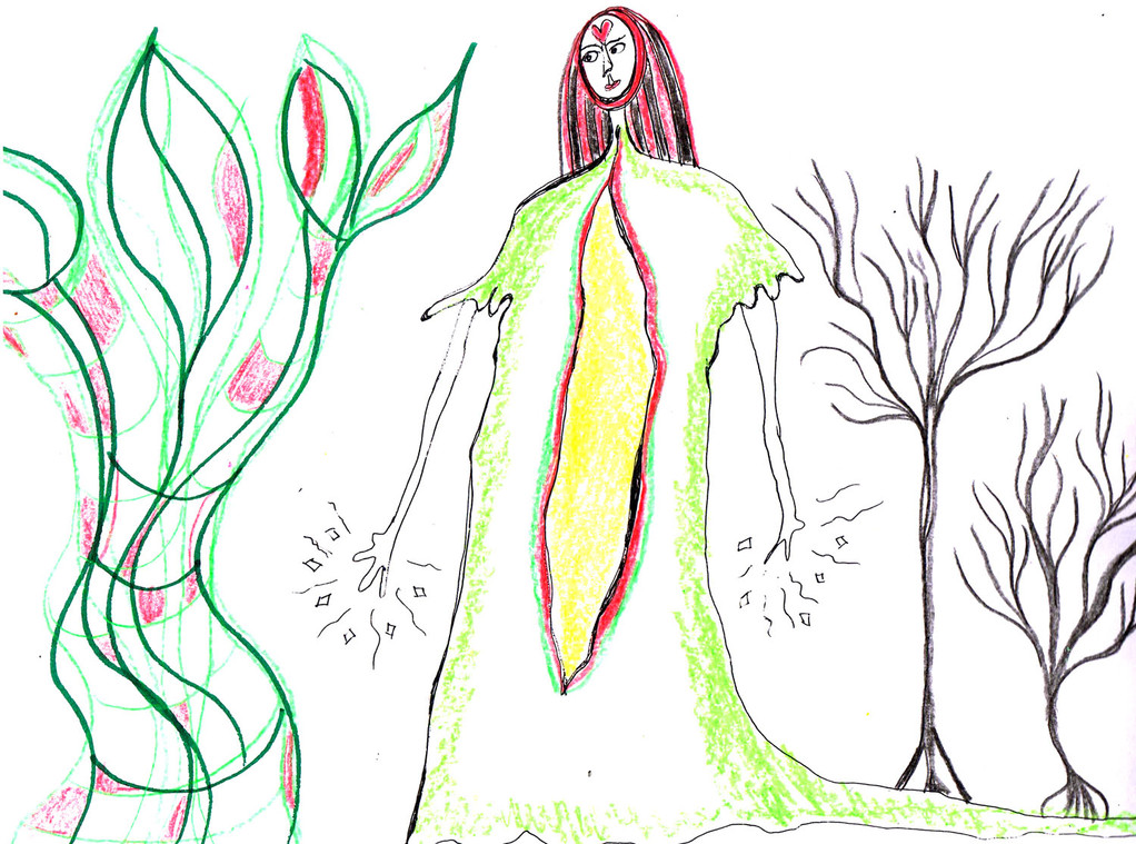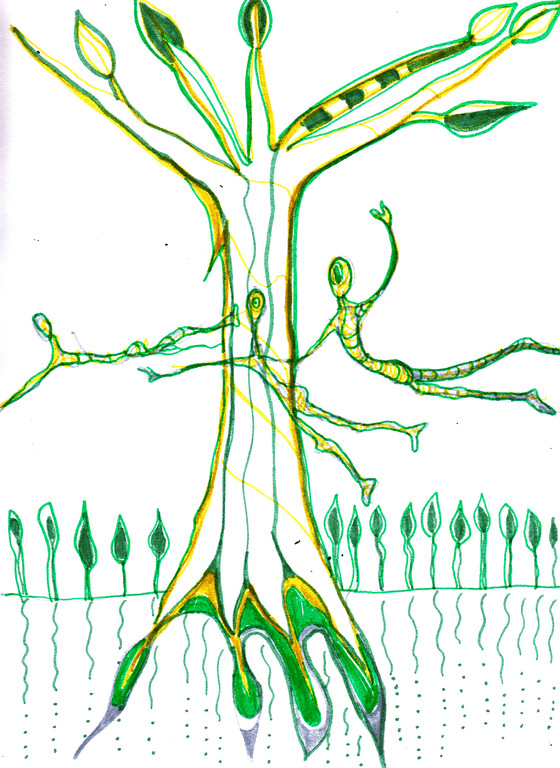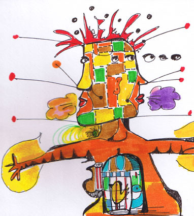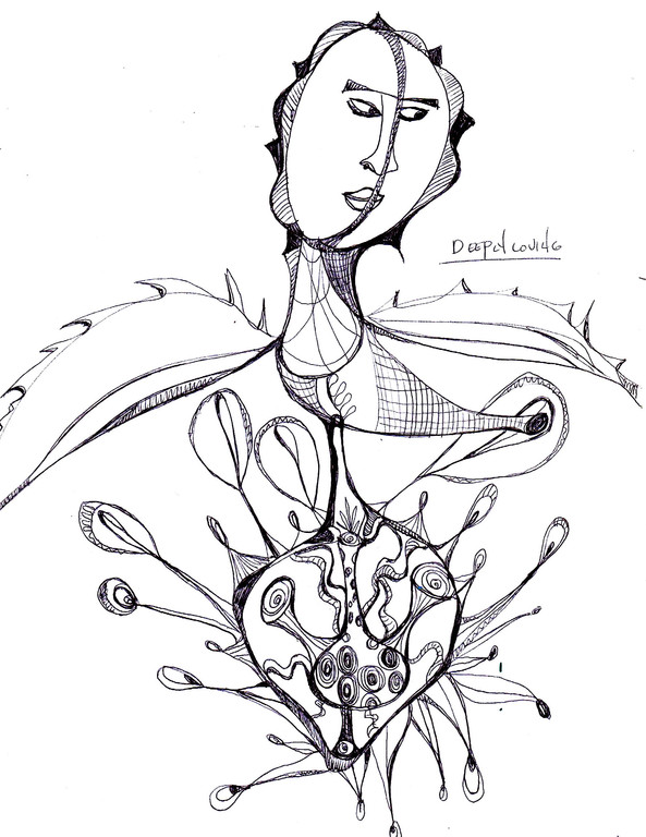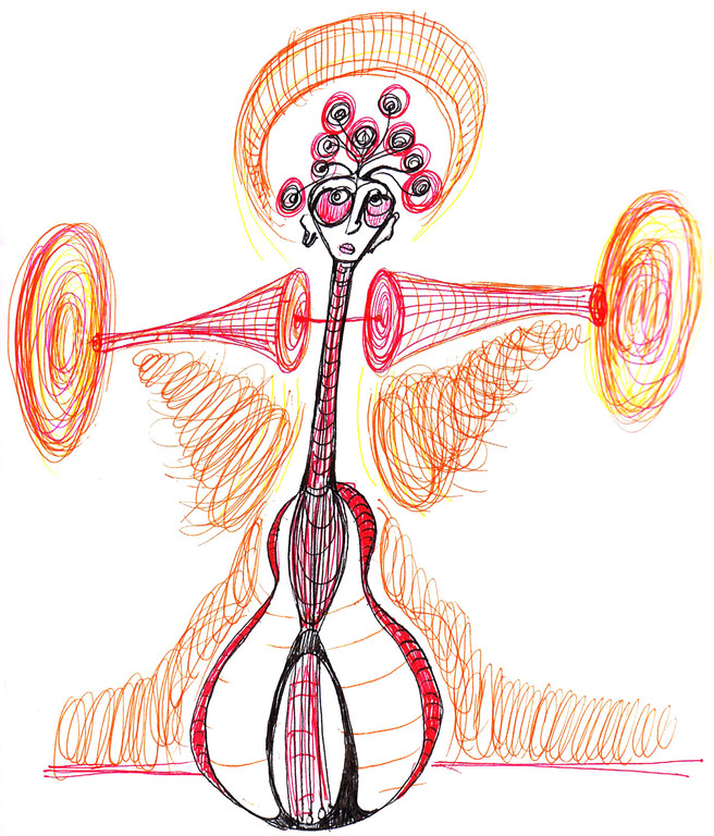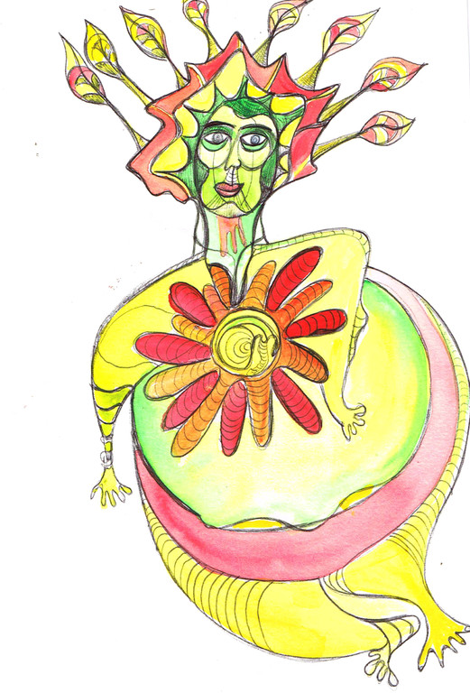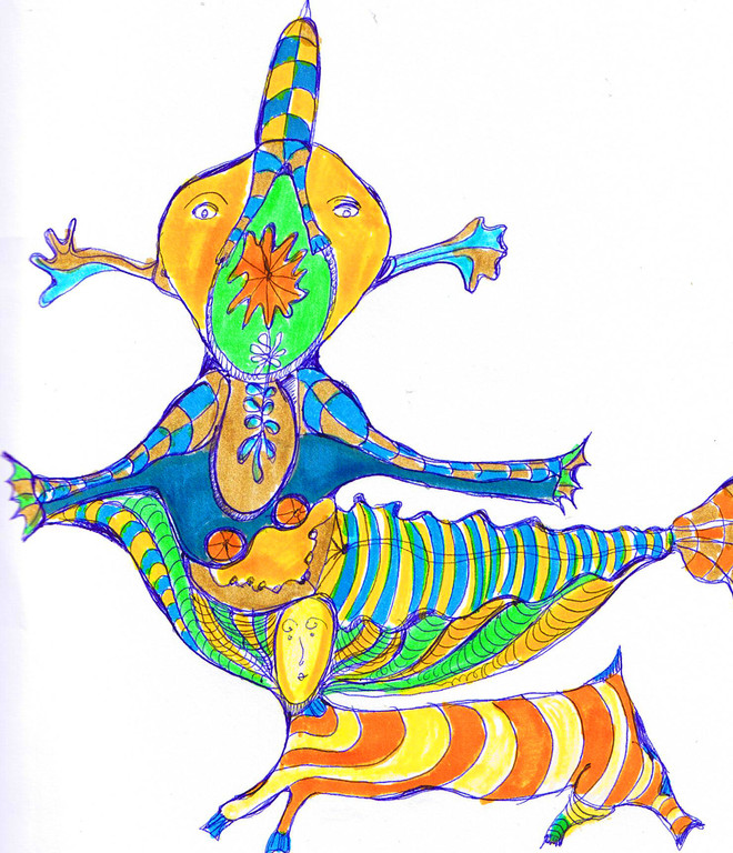 Intuitive drawings can begin as simple doodle that will become more eloquent as you practice. You can use ballpoint pens, markers, gel pens or pastels. Draw for the surprise and joy of the process, without knowing in advance how each drawing will turn out.