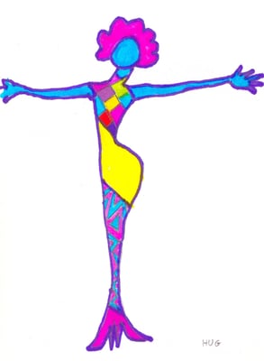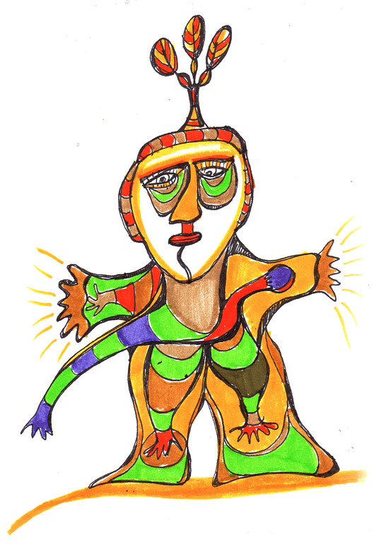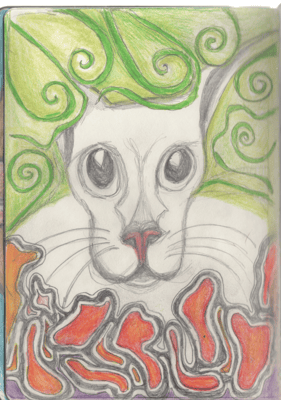 "I have been making art, specifically taking classes, especially for faces, for three years now...and so faces are my usual go-to when drawing. What I have learned is...although I love to create faces, I love more primitive work.