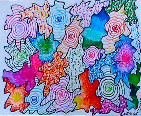 Intuitive Drawing allows me to see more of myself and allows me to express my inner feeling. Mandalas has the effect of calming and making my mind more focus. ~ C.N