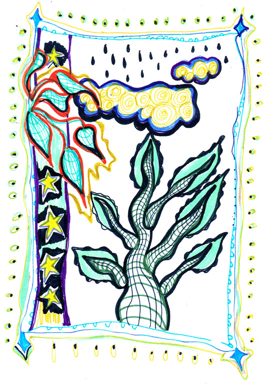 This drawing journey was not easy to start…It is a while since I stopped drawing/painting and each time I try to get back I feel ‘frozen’. I have never tried intuitive drawing before but after reading your personal story I though I ought to give it a try. For this challenge I used only markers (which I haven’t used before for drawing) and/or a B2 pencil. Nevertheless, after about 3 days I was looking forward for my daily drawing. I enjoyed the process. Thank you so much! ~ K.L. Scotland
