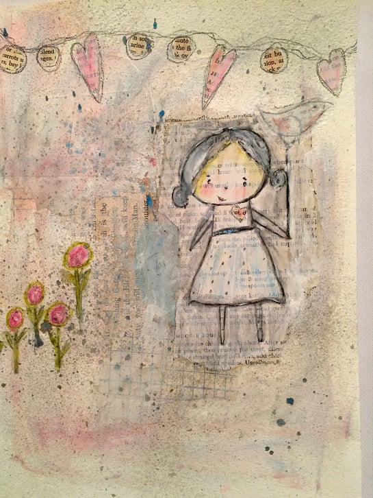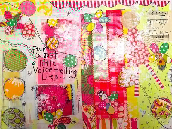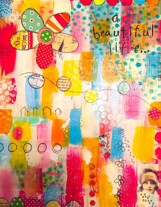In my essence, I am at home. I love being at home. We live in the country so I am happiest when I am here and my sons are coming and going, my husband is close by and cows are mooing in the background all while I’m knee deep in paint, fabric, paper and glue. It’s all I need.